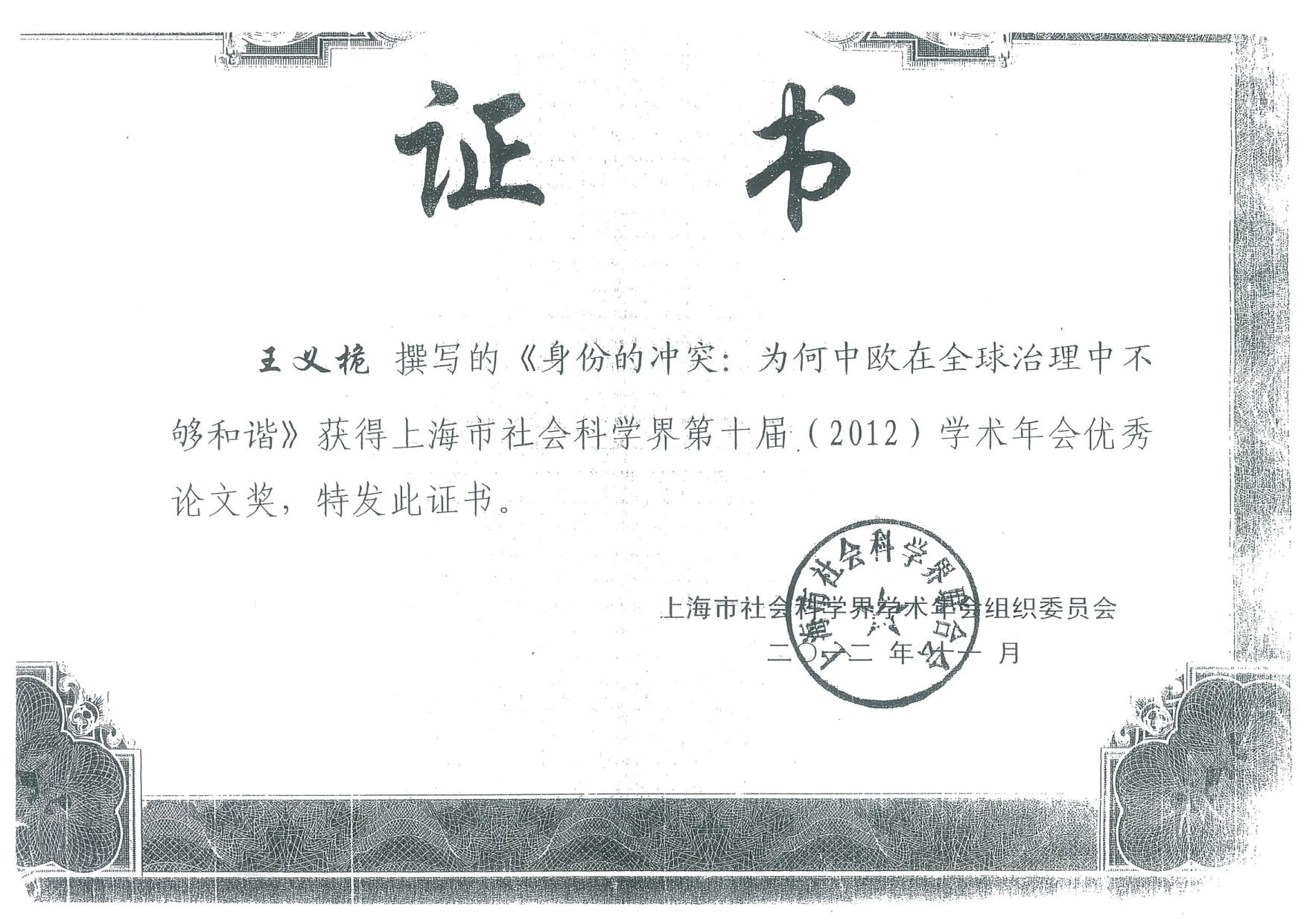 王义桅曾先后被评为复旦大学“世纪之星”、北京市“四个一批”人才、外交部系统国家优秀公务员,曾在上海市社科界第十届学术年会上荣获优秀论文奖,亦获得复旦大学复华奖教金文科科研成果个人奖,荣获上海市第七届哲学社会科学优秀成果二等奖等。